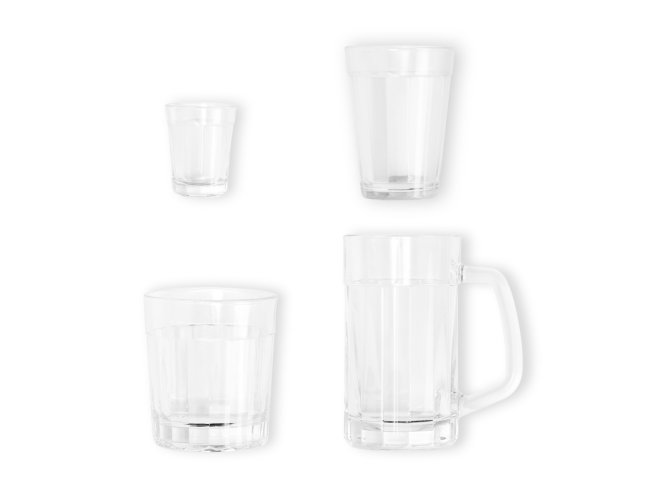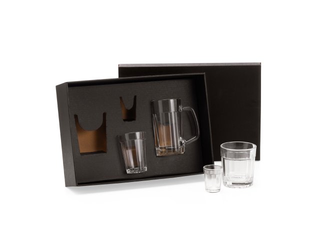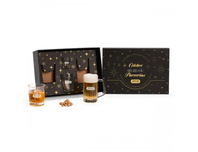 Composto por copo americano multiuso, copinho para dose, copo para Drinks e caneca americana para cerveja/chopp em vidro.