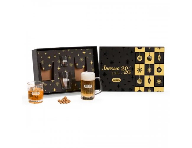 Sugestão de Personalização: Uma gravação a Laser nos dois copos, xícara e caneca; uma em Silk/Digital na tampa da caixa.