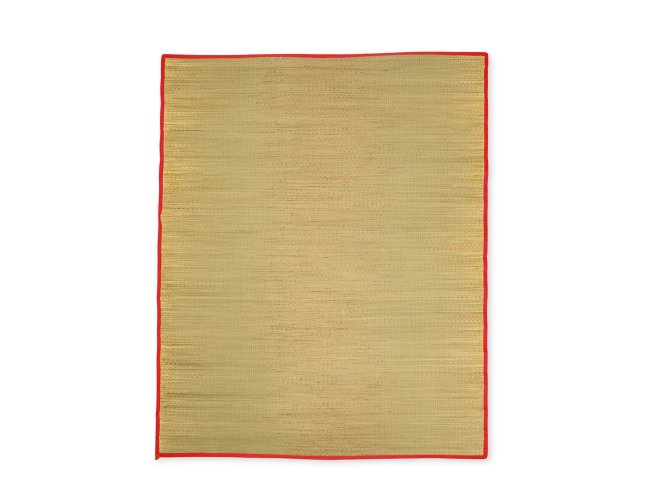 Esteira leve em palha natural com bordas costuradas em nylon.